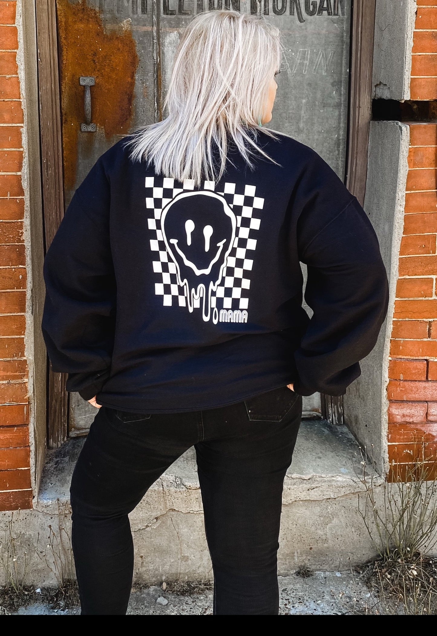 MAMA checkered smiley - Black sweatshirt